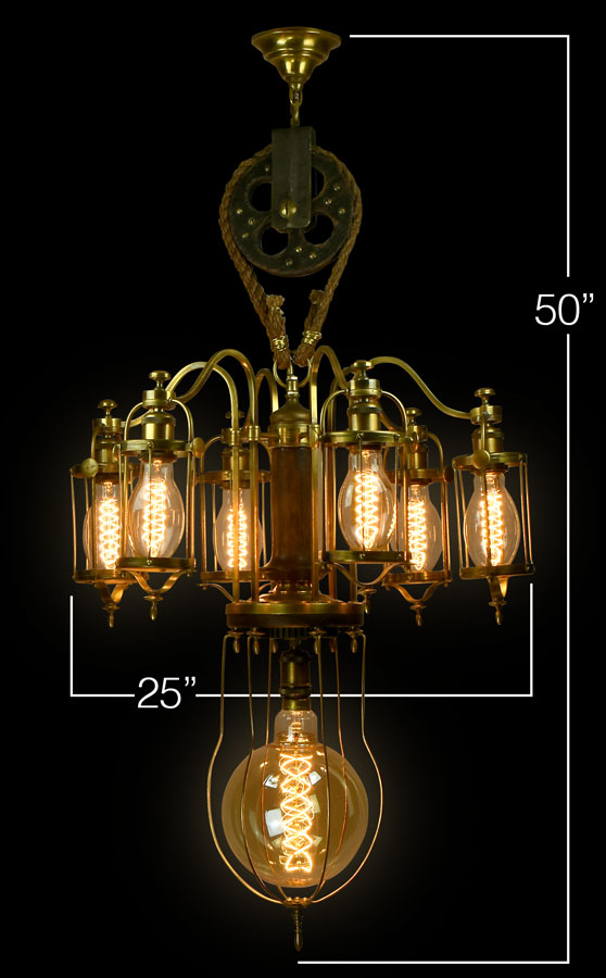 The Grand Kraken Chandelier was originally commissioned by Captain Nemo to hang in the library of the Nautilus and commemorate the victory over the mighty Kraken.  However, as with many of his endeavors, Nemo was eventually wracked by guilt and had it taken down. The crew of the Nautilus then took it to their quarters and added an old pulley to make it hang at the right height over the mess table. Where it has remained for over a hundred years.
